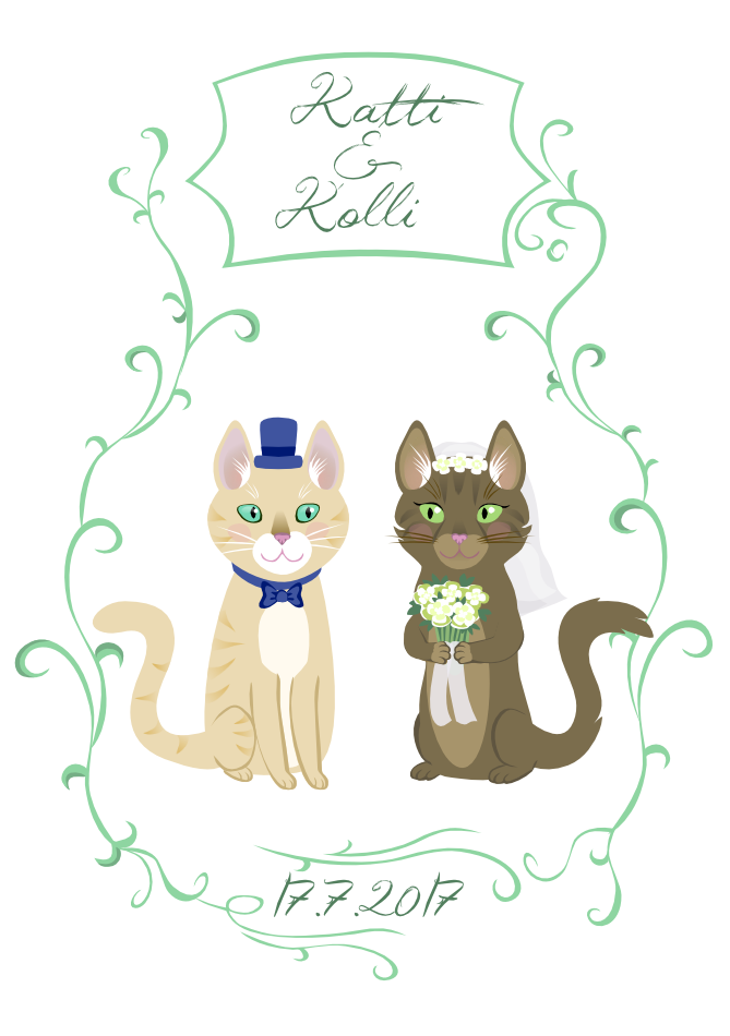 Hääkortti. Nimet ja päivämäärä muutettu. Euva 2017, Affinity Designer.