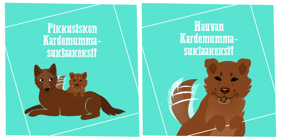 Etiketit omia leipomuksiani varten. Euva 2018, Affinity Designer.