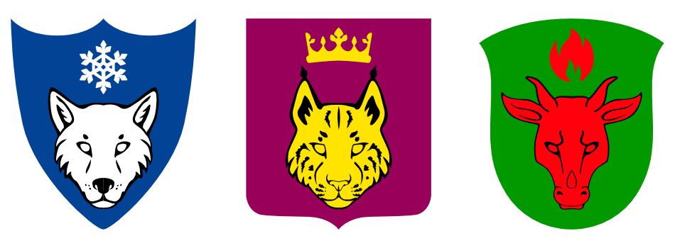 FinFur Animus -kuvitus, klaanien vaakunat Mc Wuff, Le Purr ja Von Blub. Euva 2015, Affinity Designer.